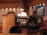 Gerelyn Kelly accompanies the audience “Carol” sing-a-long.