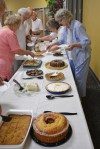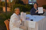 Volunteers and band wives, Becky Harvey (l) & Diane Upchurch man the “Band Request” table.